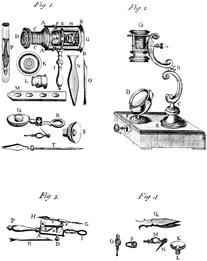 The first chapter contains a short history of the invention and improvements that have been made on the microscope, and Father Di Torre’s method of making his celebrated glass globules. The second treats of vision, in which I have endeavoured to explain in a familiar manner the reason of those advantages which are obtained by the use of magnifying lenses; but as the reader is supposed to be unacquainted with the elements of this science, so many intermediate ideas have been necessarily omitted, as must in some degree lessen the force, and weaken the perception of the truths intended to be inculcated: to have given these, would have required a treatise on optics.
