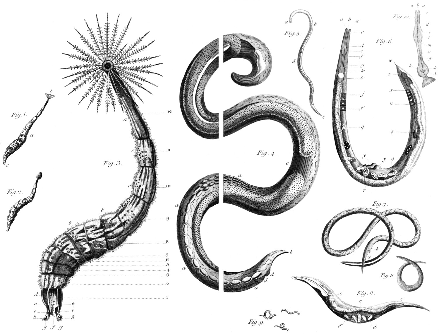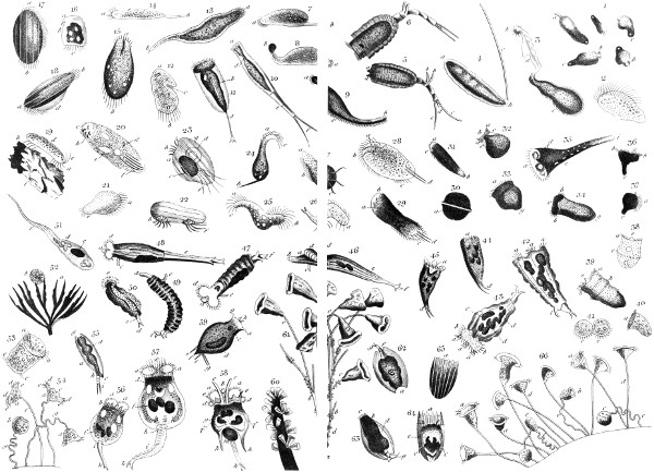 From the hydræ and vorticellæ, it was natural to proceed to the animalcula which are to be found in vegetable infusions; microscopic beings, that seem as it were to border on the infinitely small, that leave no space destitute of inhabitants, and are of greater importance in the immense scale of beings than our contracted imagination can conceive; yet, small as they are, each of them possesses all that beauty and proportion of organized texture which is necessary to its well-being, and suited to the happiness it is called forth to enjoy. A short account of three hundred and seventy-seven[2] of these minute beings is then given, agreeable to the system of the laborious Müller, enlarging considerably his description of those animalcula that are most easily[xiii] met with, better known, and consequently more interesting to the generality of readers.