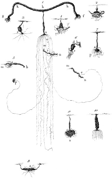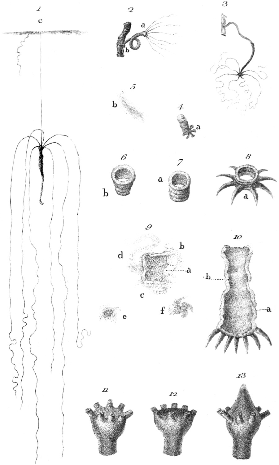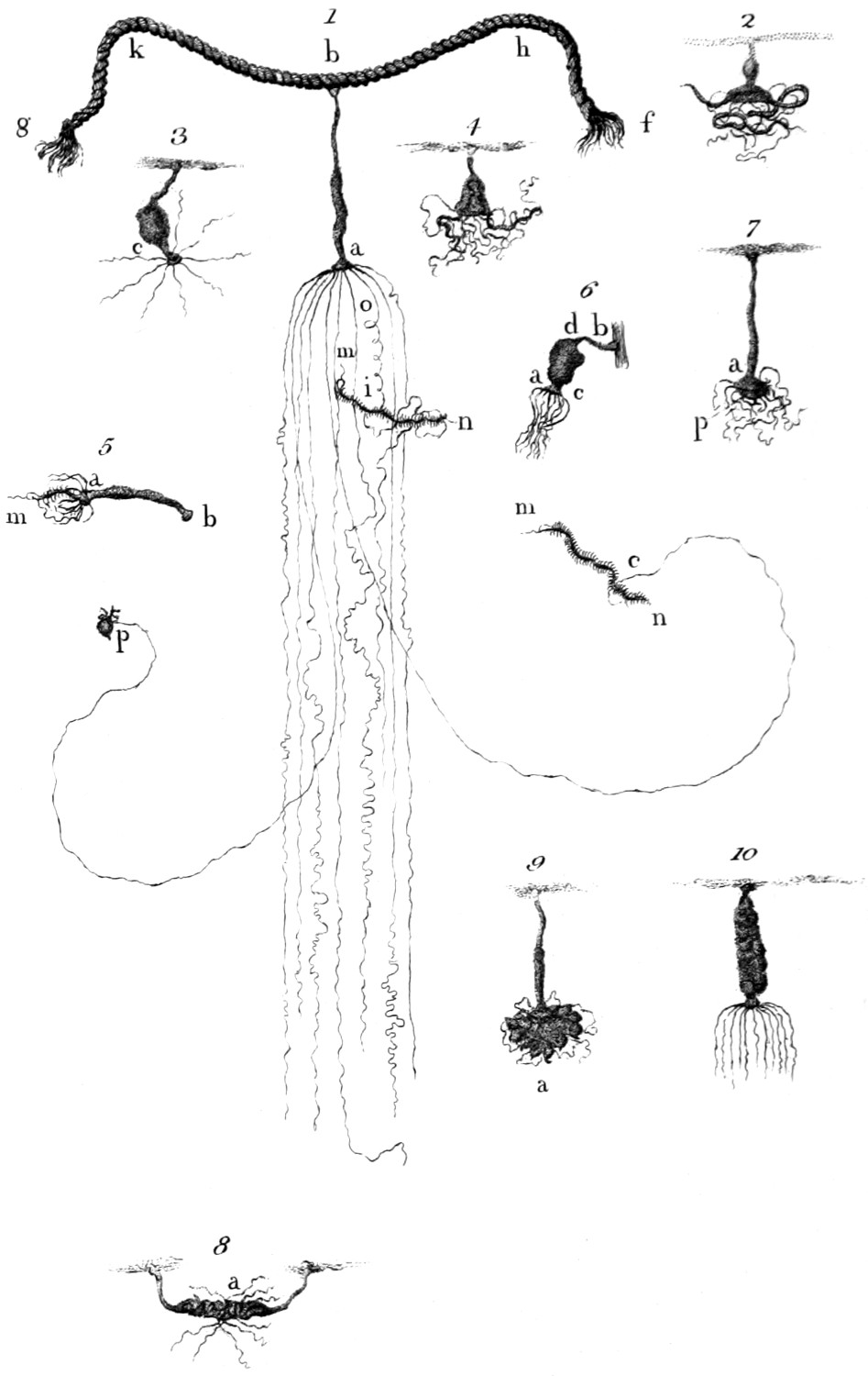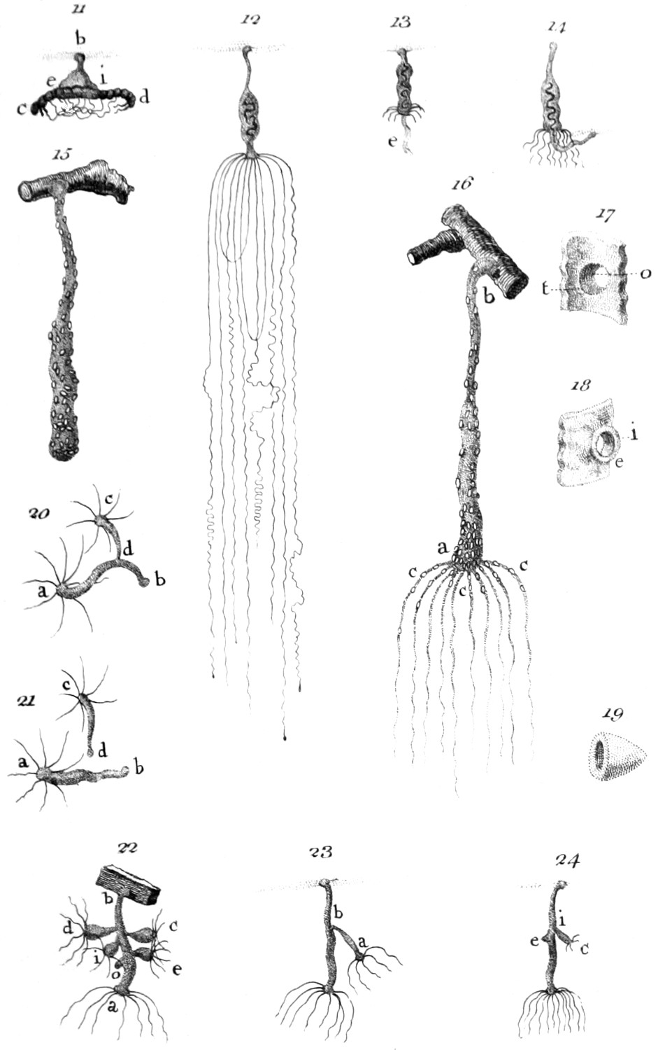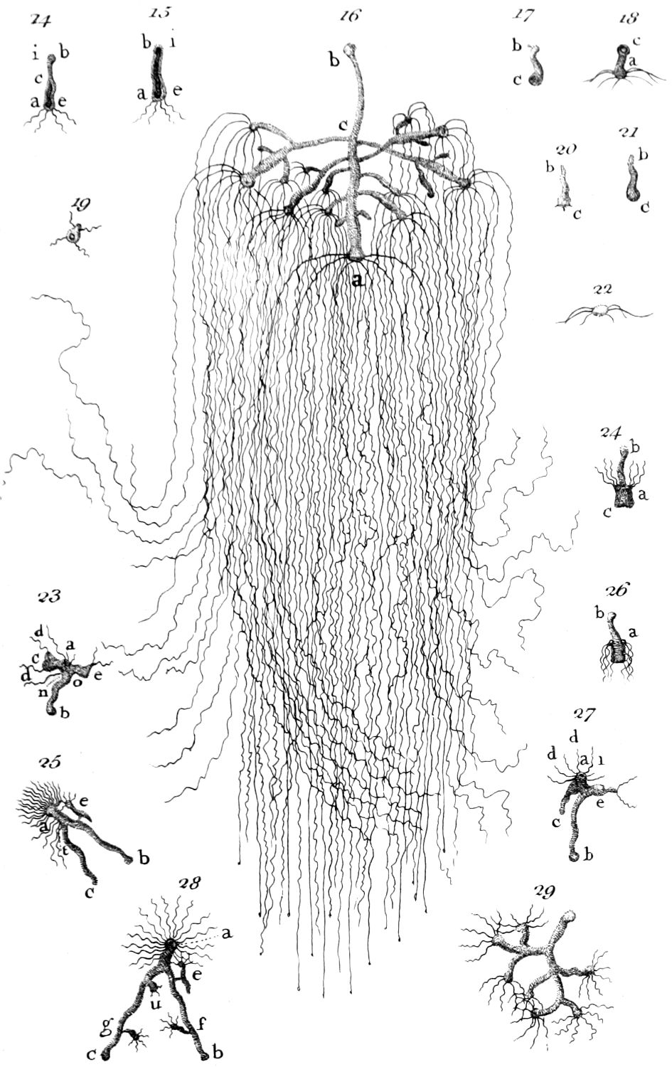 To describe the fresh-water polype or hydra; to give a short history of the discovery of these curious animals, and some account of their singular properties, is the business of the succeeding chapter. The properties of these animals are so extraordinary, that they were considered at first to be as contrary to the common course of nature, as they really were to the received opinions of animal life. Indeed, who can even now contemplate without astonishment animals that multiply by slips and shoots like a plant? that may be grafted together as one tree to another, that may be turned inside out like a glove, and yet live, act, and perform all the various functions of their contracted spheres? As nearly allied to these, the chapter finishes with an account of those vorticellæ which have been enumerated by Linnæus. It has been my endeavour to dissipate confusion by the introduction of order, to dispose into method, and select under proper heads the substance of all that is known relative to these little creatures, and in the compass of a few pages to give the reader the information that is dispersed through volumes.