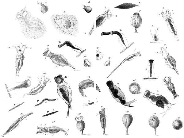From the hydræ and vorticellæ, it was natural to proceed to the animalcula which are to be found in vegetable infusions; microscopic beings, that seem as it were to border on the infinitely small, that leave no space destitute of inhabitants, and are of greater importance in the immense scale of beings than our contracted imagination can conceive; yet, small as they are, each of them possesses all that beauty and proportion of organized texture which is necessary to its well-being, and suited to the happiness it is called forth to enjoy. A short account of three hundred and seventy-seven[2] of these minute beings is then given, agreeable to the system of the laborious Müller, enlarging considerably his description of those animalcula that are most easily[xiii] met with, better known, and consequently more interesting to the generality of readers.