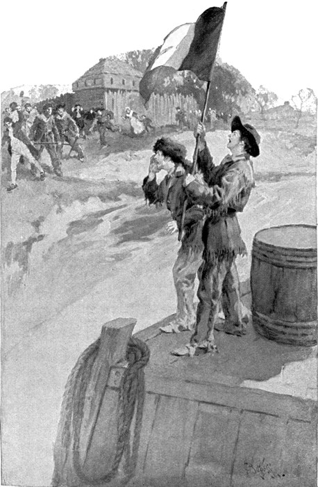 Outside the stockade there were clearings, fifty or sixty acres in extent, where the people raised wheat, corn and vegetables. It was while cultivating these crops a few years before that the settlers were surprised by the savages from the British post at Michilimackinac during the American Revolution. Across this cleared tract Napoleon was now escaping. On reaching the gateway of the stockade, Lewis caught sight of his shaggy black coat as he bounded over the charred logs that still encumbered the fields.
