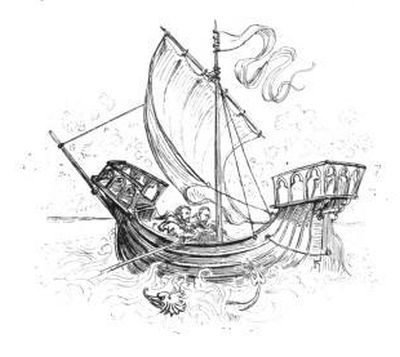 Mais vous, mon cher Robida le Téméraire, vous le moissonneur et le meunier de l'idée, vous qui semblez, comme Siva, ce dieu prodigieux de la triade indoue, posséder plusieurs bras et diverses faces, le tout au service de votre imagination surprenante et de vos observations précises et satiriques, vous qui êtes lumineusement sain et qui ignorez les états d'âme inquiets qui Hamletisent la plupart des artistes contemporains, vous m'apportiez, huit jours plus tard, votre premier conte illustré, l'Héritage Sigismond; vous posiez, par conséquent, la pierre angulaire de l'Édifice, et moi, pauvre retardataire, entraîné par votre exemple, me sentant embarqué malgré mes protestations intimes par votre esprit d'aventure vers les contrées incertaines et touffues de cette œuvre nouvelle, je me prenais à ramer à vos côtés, bien irrégulièrement toutefois, vous contraignant à m'attendre des mois et des années, tandis que je tirais des bordées sous des vents contraires ou que je faisais escale à divers ports d'attache: Revues, journaux et livres, avant de reprendre pour quelques instants ma place à vos côtés.