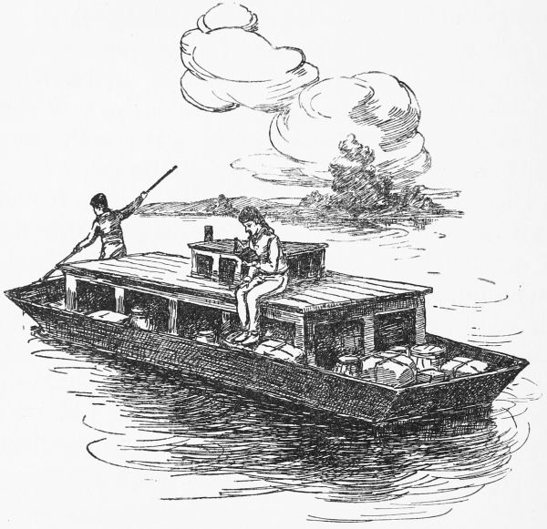 A man who kept a store thought he would send a “car-go load,” ba-con, corn meal, and oth-er goods, down to New Or-leans in a large flat-boat. As A-bra-ham was at all times safe and sure, the own-er, Mr. Gen-try, asked him to go with his son and help a-long. They had to trade on the “su-gar-coast,” and one night sev-en black men tried to kill and rob them. Though the young sail-ors got some blows, they at last drove off the ne-groes, “cut ca-ble,” “weighed an-chor,” and left. They went past Nat-chez, an old town set-tled by the French when they took the tract which is now Lou-is-i-an-a. The hou-ses were of a strange form to the boat-men. The words they heard were in a tongue they did not know. They passed large plan-ta-tions, and saw groups[25] of huts built for the slaves. At New Or-leans, in the old part of the town where they staid, all things were so odd that it seemed as if they were in a land be-yond the great sea. When they had left their car-go in its right place, they went back to In-di-an-a, and Mr. Gen-try thought they had done well.