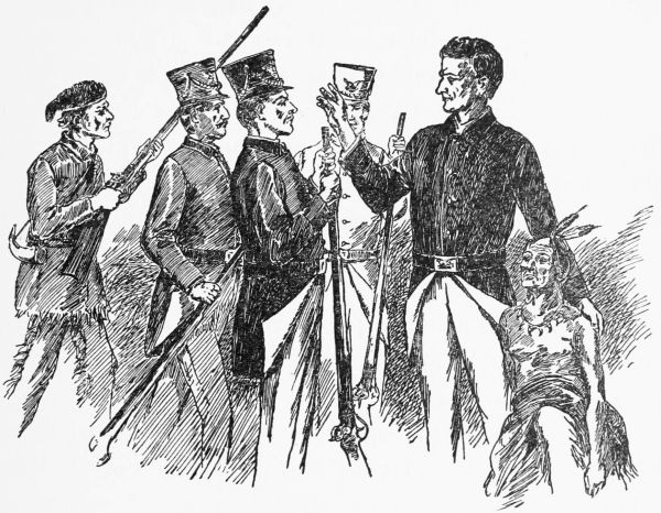 But Cap-tain Lin-coln heard the noise, and came to[35] the aid of the old man just in time. He put him-self be-tween his men and their vic-tim, and told them they must not do this thing. They were so full of wrath that Lin-coln’s own life was at risk for a while, but his brave look and firm words at length brought them to terms, and the old sav-age was let go with-out harm.