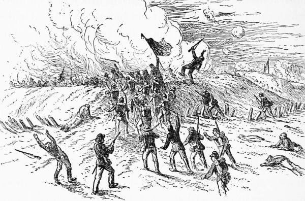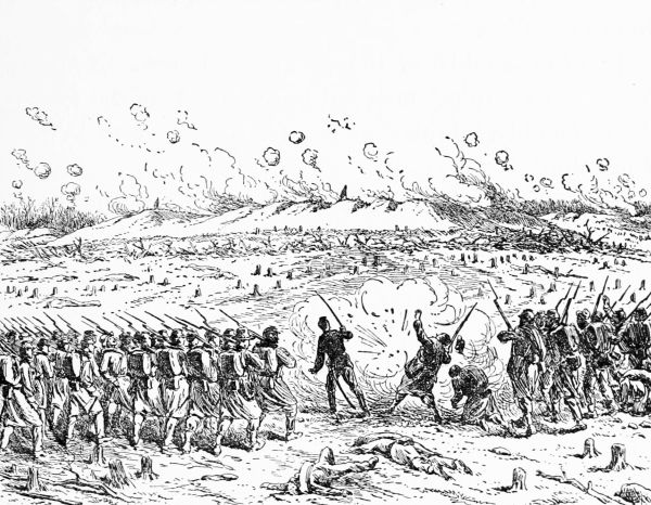 When the sun went down, with it went the hopes of the foe, for they fled and their own guns were turned up-on them.