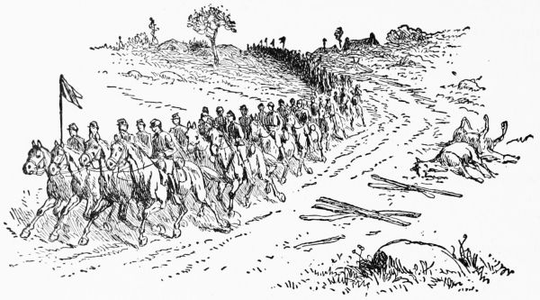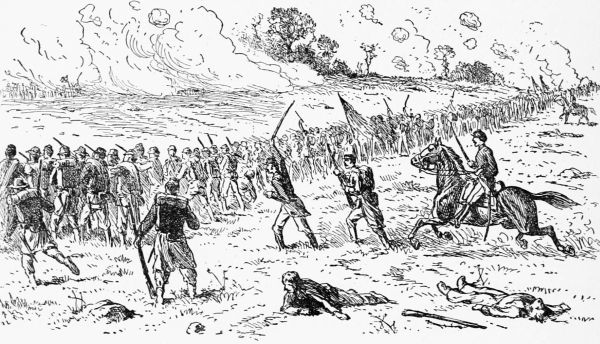 June 3, 1863, Lee marched up the Val-ley of Shen-an-do-ah to-wards Cham-bers-burg. The Un-ion ar-my too took the same course, but on the oth-er, or eas-tern, side of the Blue Ridge. “Stu-art’s Cav-al-ry” held the pass-es and this kept the Un-ion troops from know-ing[112] what went on on the west-ern side. Lee’s ar-my was the best of all the foe. Af-ter cross-ing the Po-to-mac the two ar-mies looked for each oth-er. Lee, fac-ing east, was com-ing from the west of the town of Get-tys-burg, and Meade was tak-ing his post on Cem-e-ter-y Ridge, at the south. It was not thought that a bat-tle, by all, would then be-gin, but “Meade’s Cav-al-ry,” led by Bu-ford, came up-on Lee’s front guard on Ju-ly 1, 1863, and they fought. The Un-ion men were forced back and had loss-es. Night then came on, and by that time both sides, each with a-bout 80,000 men, were in the moon-light up-on the ground. The troops were in good trim and of high cour-age. On the next day the foe car-ried works at both ends of the Un-ion line. The third day the Un-ion ar-my got back the lost ground on its right. The foe then made a fierce charge and broke through the cen-tre of the Un-ion ar-my, but were at last put down and sent back. The end of the charge was the end of the bat-tle and point-ed to the end of the war. In this fight Lee lost 36,000 men. With those he lost the first time he made a thrust at the North, and these, 90,000 of some of the best troops in the world laid down their lives for the cause they held dear.