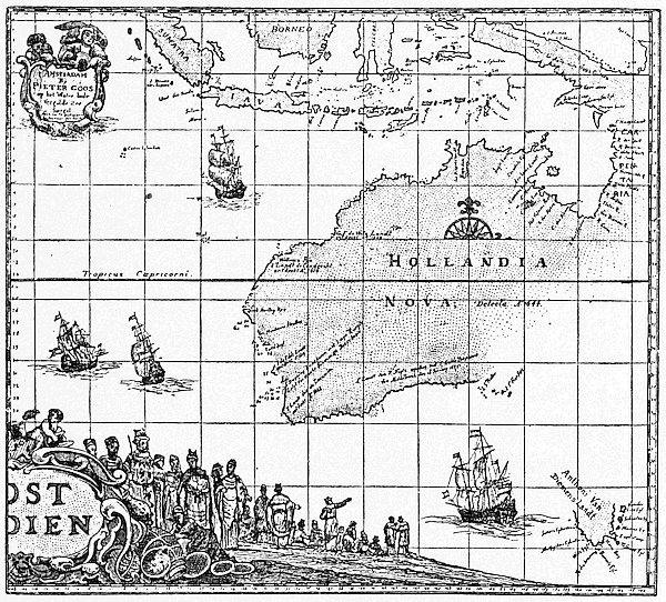 We find all along these coasts the names of the ships still surviving, as in Arnhem Land and Cape Leuwin; those of the captains, as in Dirk Hartog Island, Houtmans Abrolhos, Edels Land and Nuyts Land; while the Gulf of Carpentaria is a memorial to Peter Carpenter, the then Governor of the great trading company.