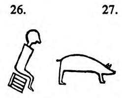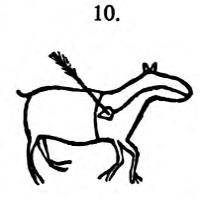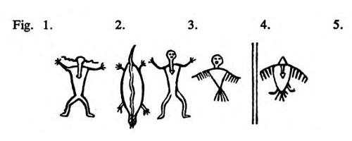 [59] These rude pictures are carved on a flat piece of wood, and serve to suggest to the minds of those who have learned the songs, the ideas, and their order of succession; the words are not variable, but a man must be taught them, otherwise, though from an inspection of the figure he might comprehend the idea, he would not know what to sing.