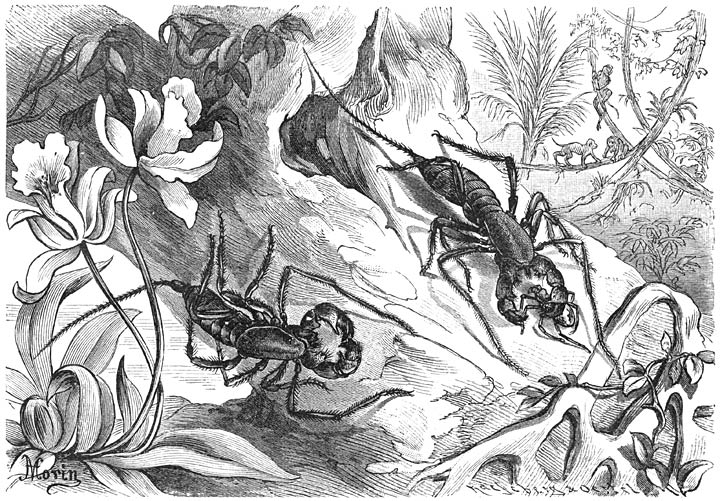 De Schorpioenen leven vooral in de tropische gewesten en in de warmste gedeelten van den gematigden aardgordel; veel verder dan tot 45° N.B. strekt hun verbreidingsgebied zich niet uit; in ons vaderland en Noord-Duitschland komen zij in ’t geheel niet voor.