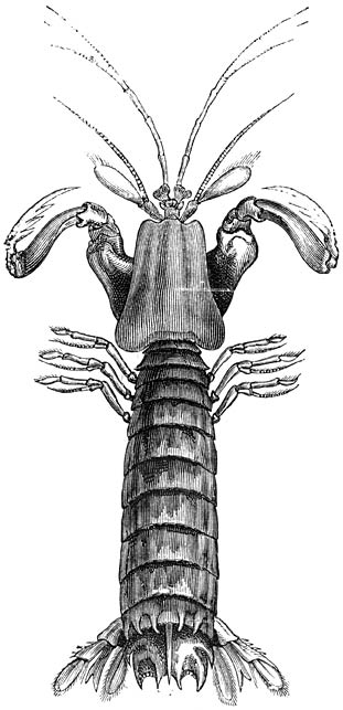 De schaal is uit verscheidene platen samengesteld en kan hermetisch gesloten worden, zoodat het dier zonder nieuwen toevoer van water geruimen tijd in ’t leven kan blijven. In ’t water houdt het de schaal geopend en brengt door voortdurende beweging der ledematen een maalstroom teweeg, die allerlei kleine zeedieren naar den mond voert.