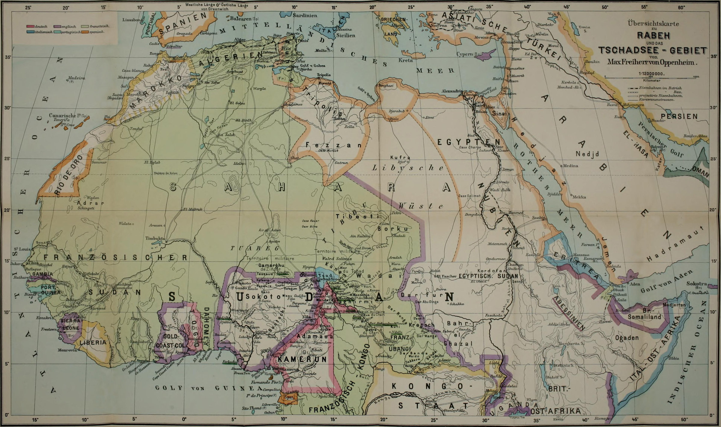 Seit 1896 konnte ich in Kairo, das für die Beobachtung aller Vorgänge in der muhammedanischen Welt ein hervorragend geeigneter Punkt ist, durch den Verkehr mit Angehörigen der verschiedensten innerafrikanischen Länder unmittelbare Nachrichten über die frühere Entwickelung der Macht Rabehs und über die jüngsten Ereignisse am Tschadsee sammeln.