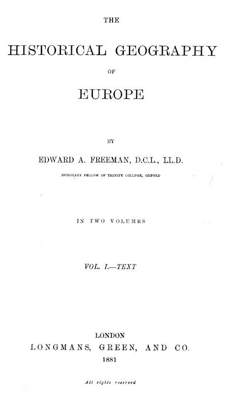 The work which we have now before us is to trace out the extent of territory which the different states and nations of Europe and the neighbouring lands have held at different times in the world’s history, to mark the different boundaries which the same country has had, and the different meanings in which the same name has been used. It is of great importance carefully to make these distinctions, because great mistakes as to the facts of history are often caused through men thinking and speaking as if the names of different countries, say for instance England, France, Burgundy, Austria, have always meant exactly the same extent of territory. Historical geography, in this sense, differs from physical geography which regards the natural features of the earth’s surface. It differs also from studies like ethnology and comparative philology, which have to do directly with the differences between one nation and another, with their movements from one part of the world to another, and with the relations to be found among the languages spoken by them. But, though it is distinct from these{2} studies, it makes much use of them. For the physical geography of a country always has a great effect upon its political history, and the dispersions and movements of different nations are exactly those parts of history which have most to do with fixing the names and the boundaries of different countries at different times. England, for instance, is, in strictness, the land of the English wherever they may settle, whether in their old home on the European continent, or in the isle of Britain, or in New England beyond the Ocean. But the extent of territory which was in this way to become England was largely determined by the physical circumstances of the countries in which the English settled. And the history of the English nation has been influenced, above all things, by the fact that the great English settlement which has made the English name famous was made in an island. But, when England had become the name of a distinct political dominion, its meaning was liable to change as that dominion advanced or went back. Thus the borders of England and Scotland have greatly changed at different times, and forgetfulness of this has led to many misunderstandings in reading the history of the two countries. And so with all other cases of the kind; the physical nature of the country, and the settlements of the different nations which have occupied it, have always been the determining causes of its political divisions. But it is with the political divisions that historical geography has to deal in the first place. With the nature of the land, and with the people who occupy it, it has to deal only so far as they have influenced the political divisions. Our present business in short is, first to draw the map of the countries{3} with which we are concerned as it appeared after each of the different changes which they have gone through, and then to point out the historical causes which have led to the changes on the map. In this way we shall always see what was the meaning of any geographical name at any particular time, and we shall thus avoid mistakes, some of which have often led to really important practical consequences.