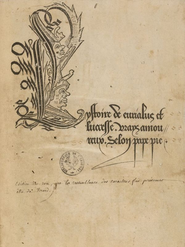 Title: L'Ystoire de Eurialus et Lucresse, vrays amoureux, selon pape Pie