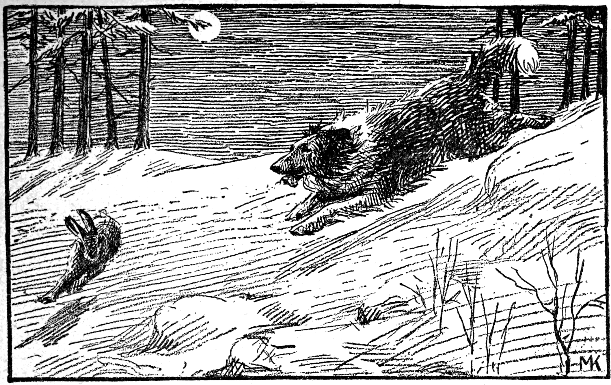 Then came an ice-bright moonlit night in late November—a night to stir every quadruped’s blood to tingling life and to set humans to crouching over fireplaces. Ten minutes after Rance and Ethan Venner, the kennel partners, finished their perfunctory evening rounds of the yards, King Whitefoot II was blithely at work.