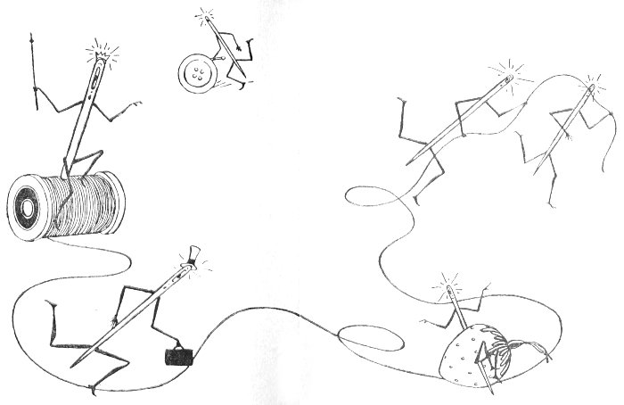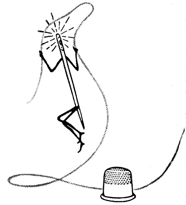 This book has been written to tell little girls how much fun it is to learn to sew and make pretty things for their dolls, themselves, and other people. Of course, as Sir Bodkin says, “We can’t have gains without pains,” but it is much pleasanter to learn in play how to do things the right way. This makes it easier for us when we are grown up, because we have the knowledge “at our finger-tips.”