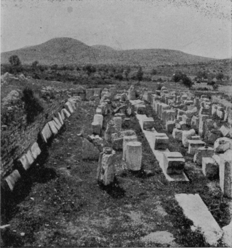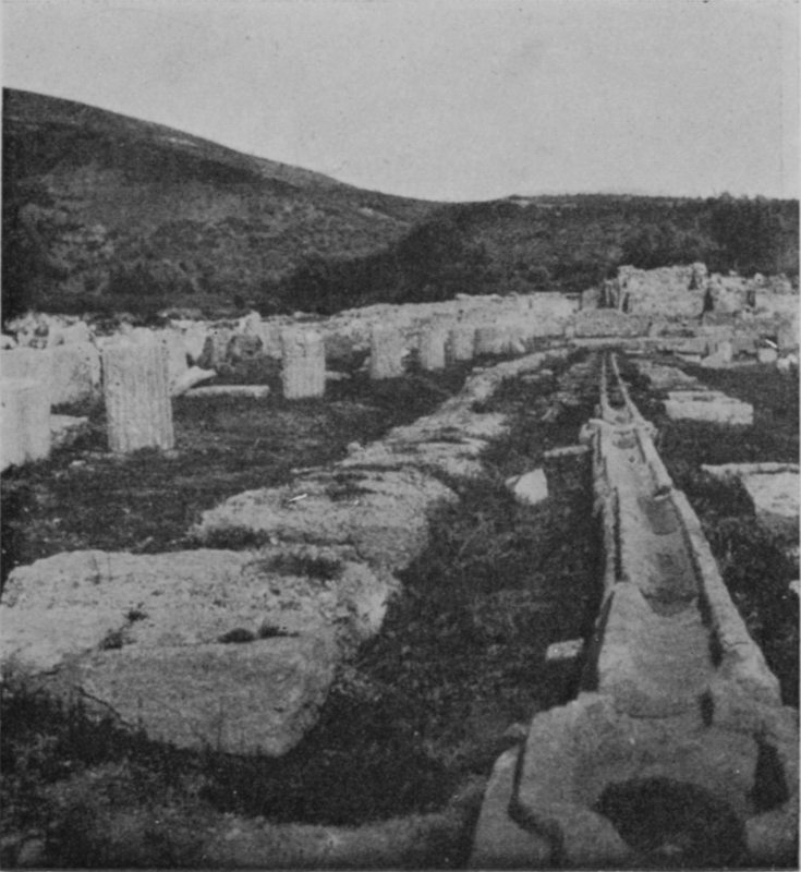 Plate VIII shows these remains of the eastern part of the Abaton. The photograph unfortunately is defective, and it gives the idea that the remains are less considerable and important than they really are.