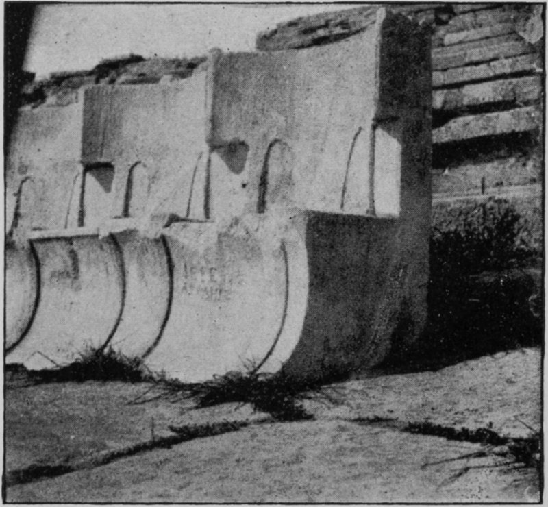 What was the purpose of the Tholos? Defrasse and Lechat believe it was a drinking-fountain, a sort of pump-room, in which in old times a healing spring arose; if so, we can imagine the gouty Athenian being sent here to drink large draughts from the holy spring, he envying meanwhile Methe and her occupation on the wall before him. The foundations are curious, consisting of a series of circular walls forming a labyrinth, every part of which must necessarily be traversed by the explorer seeking the central space, Plate XI.