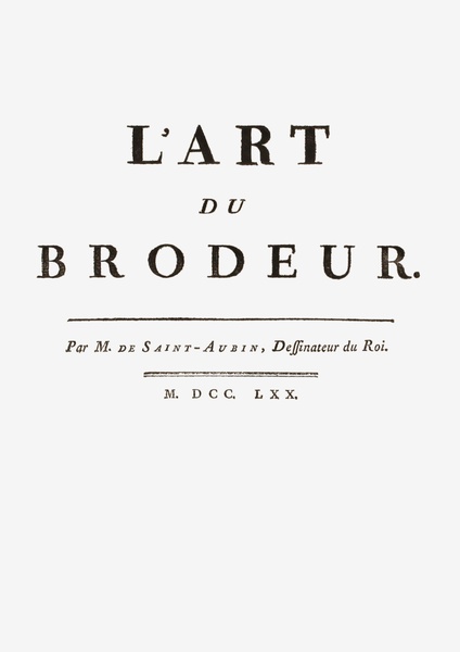 Il y a en outre huit Priviléges de Brodeurs, indépendants de la Communauté, & seulement du ressort de la Prévôté de l’Hôtel, avec titre de Brodeurs du Roi suivant la Cour; plus, deux Brodeurs du Roi, en charges particulieres, [p. 5] pour les Ouvrages de la Couronne. Ces Brodeurs du Roi ont droit, quand leurs entreprises sont très-pressées, de faire enlever par des Hoquetons les Ouvriers qui leur conviennent chez les Maîtres.