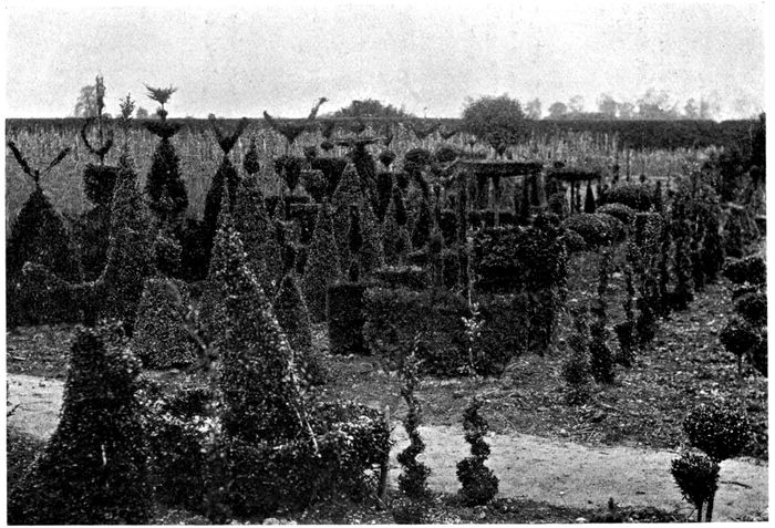 It is extremely fortunate that the Editor made no limitations, beyond that of space, when giving me the invitation to contribute a historical account of the Art of Topiary, as a sort of preface to the practical advice given in later chapters by Mr Gibson, who has charge of the wonderful collection of clipped trees at Levens Hall. This is fortunate, because it would have been difficult either to wholly praise or wholly blame an art that for at least a century and a half provided English gardens with their outstanding feature. It were easy for us to dismiss the whole subject of Topiary by affecting a great superiority and referring to it only as a monument of perverted taste, but that would neither provide interest nor give instruction, and it is hoped that both these ends may be served so far as the space at disposal will permit.