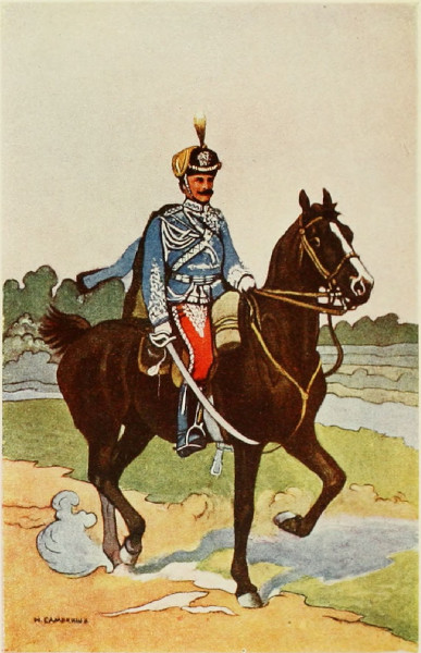 Then came Napoleon, and though the Cavalry had not such a pre-eminent place in his armies as in those of Frederick the Great, for it was not as efficient, yet it was used in vast numbers and at times with tremendous effect. Murat was perhaps the most conspicuous figure among all Napoleon’s Marshals, and other Cavalry leaders made great names for themselves. At Marengo, at Austerlitz, and in many more of Napoleon’s famous battles, the French horsemen won undying renown; and if at last his Cuirassiers had to recoil before the fire of the British squares at Waterloo, every one knows with what magnificent courage and devotion they strove again and again to cut their way to victory.