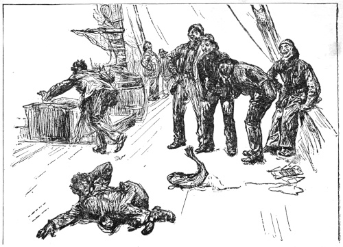 | AND THE TWO ATHLETIC YOUNG FELLOWS DREW THE ALMOST HELPLESS FORM OF THEIR SHIPMATE SLOWLY BUT STEADILY TO WHERE THEY STOOD | ” ” | 166 |