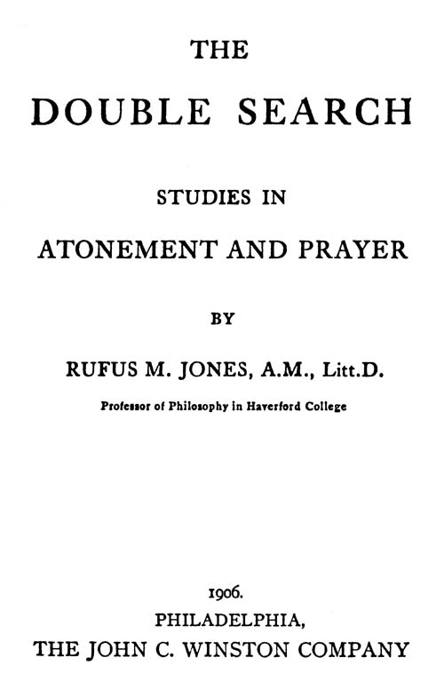 This slender book is an attempt to approach these two subjects—atonement and prayer—in this spirit and by this method. We can never get the telescope or microscope turned upon the objects[17] of spiritual experience and we cannot use the mathematical method which has worked such wonders in the physical realm. There will always be some who cannot see the evidence. But it is worth while to show that these two pillars of religion do rest—not on air—but on experience which can be verified and tested; that they rest in fact on the elemental basis of life, upon which we live our common social life together.
