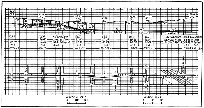 | 41. The Plan. 42. Preliminary Map. 43. Layout of the Separate System. 44. Location and Numbering of Manholes. 45. Drainage Areas. 46. Quantity of Sewage. 47. Surface Profile. 48. Slope and Diameter of Sewers. 49. The Sewer Profile. Design of a Storm-water Sewer System. 50. Planning the System. 51. Location of Street Inlets. 52. Drainage Areas. 53. Computation of Flood Flow by McMath Formula. 54. Computation of Flood Flow by Rational Method. | 78–98 |