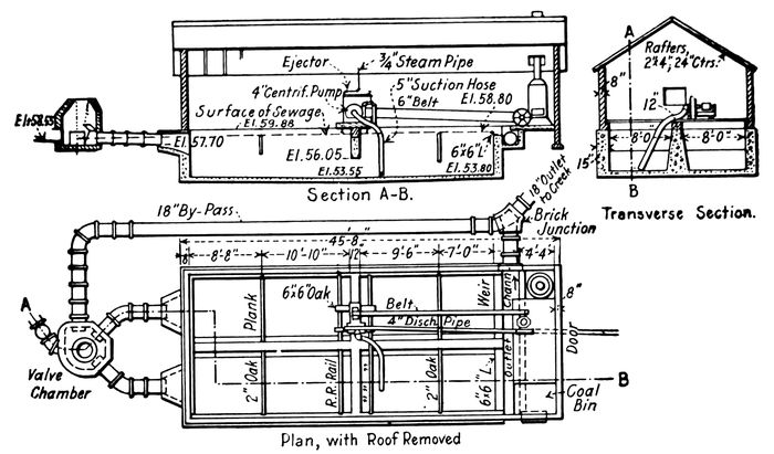 Various methods of sewage treatment preparatory to disposal have been devised from time to time. Some have fallen into disuse, such as the A. B. C. (alum, blood and clay) process, and others have taken a permanent place, such as the septic tank. The unsolved problems of sewage collection, and the number of 5persons still unserved by sewerage and sewage disposal opens a wide field to the study and construction of sewerage works.