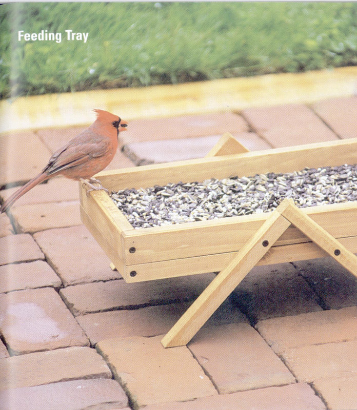You can start simply with a piece of scrap wood elevated a few inches above the ground. Add a few holes for drainage and you’ve built a platform feeder. It won’t be long before the birds find it.