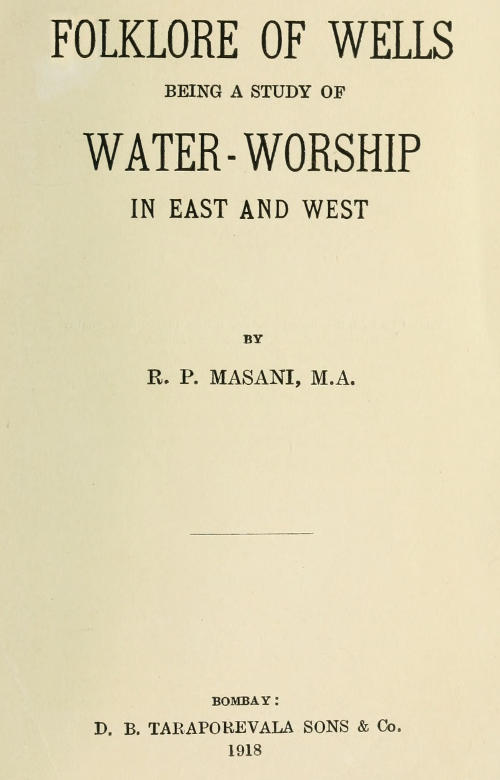 For literary conceits and dreams of authorship there is no more powerful antidote than the tedium of official life. It radically cures all such morbid propensities. This little book, however, owes its inspiration to office routine. It was in connection with official business that my interest in the subject of water-worship was awakened about six years ago when in my capacity as Municipal Secretary of Bombay I received several protests against requisitions for the closing of wells.