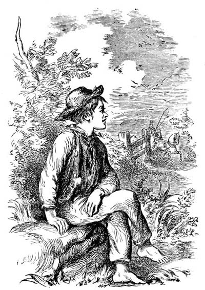 Rollo liked reading very well for a day or two, but he soon became tired. He thought the quarter of an hour was very long, and that Mary always called him too soon. He was mistaken however in this, for Mary was always very exact and punctual. He found too that he got along very slowly. It was a good many days before he could say the first few letters, and he thought it would take a great while before he should have learned them all.[17] One pleasant morning, when he was digging with his little hoe, in the yard, Mary called him, and for a minute or two he had a great mind not to come. But then he recollected that if he did not, she would immediately put the book away and tell his father at night, so he threw down the hoe and ran. But it was very hard for him to do it.