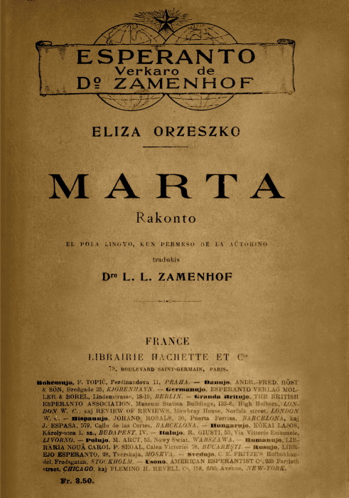 The Project Gutenberg EBook of Marta, by Eliza Orzeszkowa This eBook is for the use of anyone anywhere in the United States and most other parts of the world at no cost and with almost no restrictions whatsoever. You may copy it, give it away or re-use it under the terms of the Project Gutenberg License included with this eBook or online at www.gutenberg.org. If you are not located in the United States, you'll have to check the laws of the country where you are located before using this ebook. Title: Marta Author: Eliza Orzeszkowa Translator: L. L. Zamenhof Release Date: April 17, 2020 [EBook #61860] Language: Esperanto Character set encoding: UTF-8 *** START OF THIS PROJECT GUTENBERG EBOOK MARTA *** Produced by Andrew Sly, Miroslav Malovec and the Online Distributed Proofreading Team at https://www.pgdp.net (This book was produced from images made available by the HathiTrust Digital Library.)
