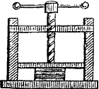 Je nach der Art, in welcher die Zeichen gegeben werden, unterscheidet man Nadel-Telegraphen, Zeiger-Telegraphen, Druck- oder Schreib-Telegraphen und Copir-Telegraphen. Der oben beschriebene ist der Zeiger-Telegraph.[199] Bei dem Nadel-Telegraphen werden die Zeichen zum Theil durch die Bewegungen einer oder zweier Magnetnadeln gegeben, die an ihrem Ende mit einem Stifte versehen sind, der in einen Farbennapf taucht und auf einem vorübergleitenden Papiere die Spuren der Nadelbewegung als schwarze Punkte hinterläßt. Durch bestimmte Gruppen dieser Punkte werden die verschiedenen Buchstaben bezeichnet; andererseits genügt auch schon das abwechselnde Ausschlagen der Magnetnadel nach links und rechts, um eine Zeichensprache daraus zu bilden. Der seit 1866 in regelmäßigem Betriebe befindliche atlantische Telegraph ist gleichfalls ein Nadel-Telegraph. Der Schreib- oder Druck-Telegraph (Fig. 110) bewirkt das Aufschreiben der aus der Ferne mitgetheilten Zeichen in noch vollkommnerer Weise. Derselbe besteht in der Hauptsache aus einem aufrechtstehenden, kräftigen Electromagneten, an dessen Anker das Ende eines Hebels befestigt ist, dessen anderes Ende einen kleinen stumpfen Stahlstift trägt. Sobald dieser Hebel durch den Electromagneten angezogen wird, drückt sein Stahlstift auf einen Streifen Papier, welcher durch ein Räderwerk gleichmäßig unter einer Walze hingezogen wird. Wird der Strom unterbrochen, so hört auch die Anziehung des Electromagneten auf, und eine Feder zieht dann den Hebelarm und den Stahlstift von dem Papiere wieder zurück. Je nachdem der Strom also für einen Augenblick oder für längere Zeit geschlossen ist, entstehen eingedrückte Punkte oder Striche auf dem Papier und durch die verschiedenen Verbindungen dieser Punkte und Striche lassen sich dann alle Buchstaben des Alphabets darstellen. Bei dem Copir-Telegraphen wird sogar die Handschrift selbst wieder gegeben und es können selbst ganze Zeichnungen und Situations-Pläne telegraphirt werden. Man benutzt nämlich hierbei die farbigen Niederschläge, welche gewisse chemische Substanzen bei der Zersetzung durch den electrischen Strom geben. Eine rotirende Walze wird mit einem in dieser Weise chemisch präparirten Papier bedeckt. Wird nun während der Umdrehung der Walze vermittelst einer Feder ein Stift beständig gegen das Papier gedrückt, so beschreibt dieser Stift, so lange ein electrischer Strom durch ihn hindurch zur Walze geht, auf dem Papier einen farbigen, braunen oder blauen Strich. Läßt man zugleich die Walze nach jeder Umdrehung sich etwa um ½ Millimeter seitwärts verschieben, so wird das ganze Papier allmählich mit schraffirten Linien bedeckt. Jede Unterbrechung[200] des Stromes hat natürlich auch eine Lücke in diesen Linien zur Folge, und wenn diese Unterbrechungen der Form von Buchstaben entsprechen, so erhält man eine weiße Schrift auf schraffirtem Grunde. Um solche Unterbrechungen zu bewirken, stellt man auf der Station, von welcher die Mittheilung ausgeht, eine völlig gleiche und sich gleichbewegende Walze auf, deren Achse mit der Batterie verbunden ist. Ueber diese Walze aber legt man ein Papier, auf welches die Depesche mit firnißhaltiger Schwärze gedruckt oder geschrieben ist. Die Spitze des einen Leitungsdrahts ruht ebenso auf diesem Papier, wie die Spitze des anderen auf dem chemischen Papiere der andern Station, so daß der electrische Strom durch beide Papiere gehen muß. Der Firniß aber unterbricht als Nichtleiter den Strom, so oft der Draht während der Umdrehung der Walze auf ein Schriftzeichen trifft. Drehen sich also beide Walzen mit gleicher Geschwindigkeit, so müssen, da auch die Unterbrechungen des Stromes auf beiden Stationen gleichzeitig geschehen, die Lücken auf dem chemischen Papiere dieselbe Schrift bilden, welche mit der firnißhaltigen Schwärze auf das Blatt der entfernten Station geschrieben war.