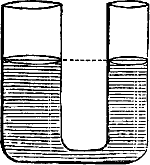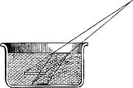 Weil die in dem Glase enthaltene Luft in dem Raume, den sie einnimmt, nicht zugleich einen andern Körper zulassen kann, ohne daraus verdrängt zu werden. Ein anderer Raum, in den sie[4] übergehen könnte, ist aber nicht vorhanden, und sie muß daher ihren Raum beibehalten und das Wasser verhindern, in denselben einzudringen. Ein Stückchen Kork, das unter einem solchen Glase auf dem Wasser schwimmt, geht mit dem Glase bis zum Boden des Gefäßes hinab und steigt beim Herausziehen des Glases wieder empor, ohne daß es benetzt wird. Wenn man das Glas unter das Wasser drückt, so dringt allerdings etwas Wasser in das Glas ein, aber nicht weil die Luft darin vernichtet ist, sondern weil sie etwas zusammengedrückt ist.