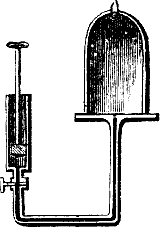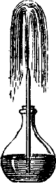 Weil auch das Wasser Poren oder Zwischenräume enthält, die von Luft erfüllt sind, diese Luft aber, wenn sie erwärmt wird, sich in einen größeren Raum auszudehnen strebt, und da sie die Poren selbst nicht erweitern kann, diese verläßt und sich nach der Oberfläche des Wassers empordrängt. Dabei vereinigen sich[6] mehrere der benachbarten kleinen Luftbläschen und bilden so die größeren, uns sichtbar werdenden Perlen. Dasselbe findet auch statt, wenn man den gewöhnlich auf der Oberfläche des Wassers ruhenden Druck der Luft verringert, wie dies unter der Glocke einer Luftpumpe durch die Verdünnung der Luft geschieht.