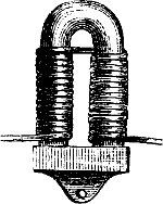 439. Warum erhält ein Stab aus weichem, nicht magnetischem Eisen die Eigenschaft Eisen anzuziehen, wenn man einen mit Seide übersponnenen Kupferdraht um denselben windet, und die Enden des Drahts mit den Polen einer galvanischen Kette verbindet?