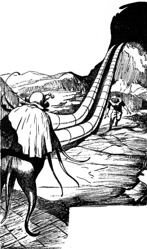 Peetn disengaged his tentacle-tip and strode off down the slope to the subterranean entrance of the pump room. Clark hesitated a moment and then followed, more slowly because of his wasted strength, Peetn turned and waited for him at the head of the steps, and they entered the cavern together.