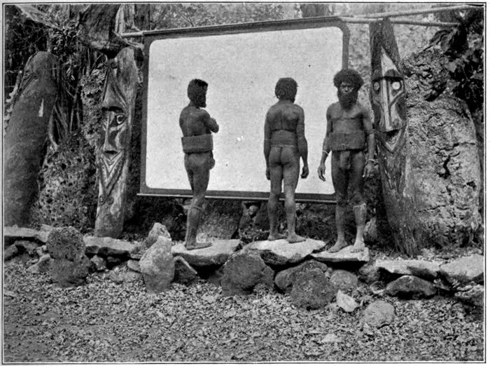 By this time we were surrounded by a group of savages, each as terrible-looking as our first visitor. As they made no effort to molest us, however, we gained confidence. I set up a camera and ground out several hundred feet of film. They had never seen a motion-picture camera before, but, as is often the 16way with savages, after a first casual inspection, they showed a real, or pretended, indifference to what they could not understand.