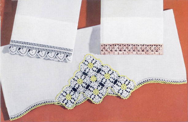 13th Row. Same as 7th row. Repeat from 8th row until edge is long enough to fit around lower edge of pillowcase. Sew in position.