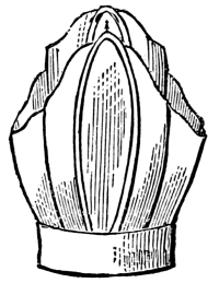 This spirited design is difficult to accomplish, and requires to be very stiff indeed. Fold the serviette in half twice, lengthways, keeping the hems to the edge. Then plait it as the Shell was plaited, in the way shown in fig. 1. The number of petals will depend on the number of folds, which should be twice as many as were made for the Shell, the width being only half as much. Keep the folds as close together as possible, and begin forming the petals by drawing back the first hem, as the edge of the Shell was done. Proceed to turn down the next fold and make another round of petals to meet the first ones, and finish by making the last hem fold in the same way (fig. 2). Set it round by bringing the two edges of the serviette together. It is not at all easy to set the petals well. The bread is not to be placed in or under it; but a single flower, such as a rose, may very properly be slipped into the heart. Fig. 3 represents the Victoria Regia, which should be placed in the centre of the plate.
