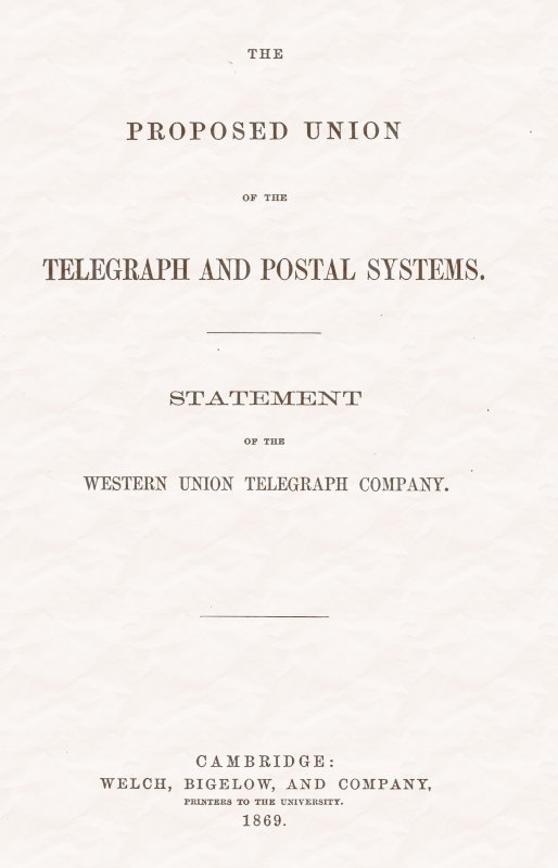The policy and practice of the Western Union Telegraph Company favor a reduction of the rates on despatches as rapidly as the necessary expenses of the service will admit; and if the government will abolish its tax on the receipts for transmitting telegrams, this company will immediately lower its rates until the reduction upon the gross amount of business done shall be twice as much as the tax remitted.