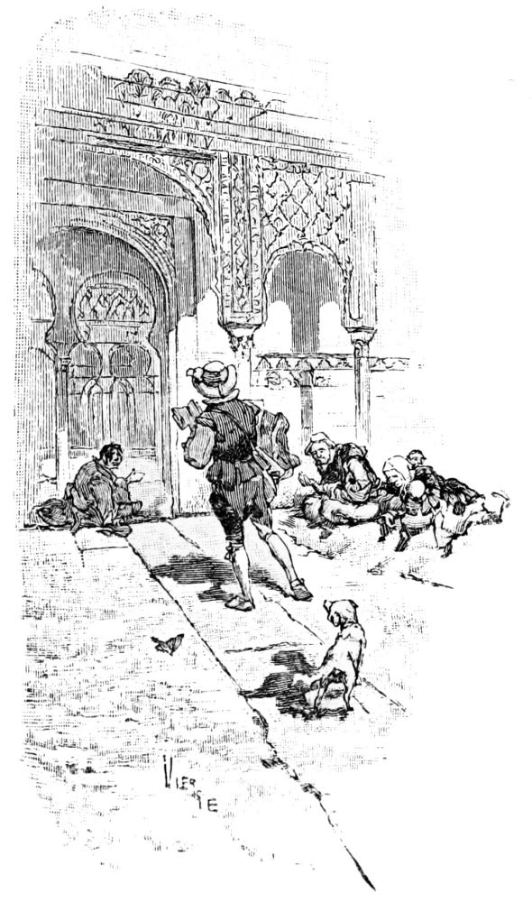 En entrant à Valladolid où se tenait pour lors la Cour, je me plaçai comme page chez don Juan de Idiaquez, secrétaire du Roi. Il me vêtit proprement, et je pris le nom de Francisco Loyola. Je demeurai là sept mois, bien aise. Au bout de ce temps, une nuit que je me tenais à la porte avec un autre page, mon compagnon, mon père survint et s’enquit de nous si le seigneur don Juan était céans. Mon camarade répondit que oui. Mon père lui dit de l’aviser qu’il était là. Le page monta, et je restai avec mon père sans nous dire mot et sans qu’il me reconnût. Le page revint et lui dit de monter. Il entra, je le suivis. Don Juan sortit sur l’escalier et, l’accolant, s’écria:—Seigneur Capitaine, quel bon vent vous amène? Mon père lui répondit de telle sorte qu’il comprit qu’il{7} avait quelque ennui. Il rentra, congédia une visite et revint. Ils s’assirent. Il demanda ce qu’il y avait de neuf, et mon père lui dit comme quoi sa fille s’était sauvée du couvent, ce qui l’amenait dans ces parages, à sa recherche. Don Juan témoigna d’en être très marri, autant pour le chagrin qu’en avait mon père et pour moi qu’il aimait fort, qu’à cause du couvent dont il était patron par fondation de ses ancêtres et du pays où il était né. Quant à moi, après avoir ouï l’entretien et les doléances paternelles, je me retirai, courus à mon appartement, pris mes hardes et sortis emportant à peu près huit doublons que je me trouvais avoir. J’allai à l’auberge où je dormis cette nuit-là et, ayant su qu’un muletier partait le lendemain pour Bilbao, je fis prix avec lui et, à l’aube, levai le pied sans savoir que faire ni où aller, sinon me laisser emporter du vent comme une plume.{8}
