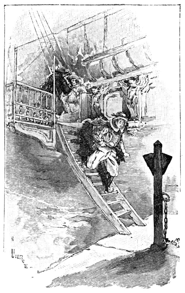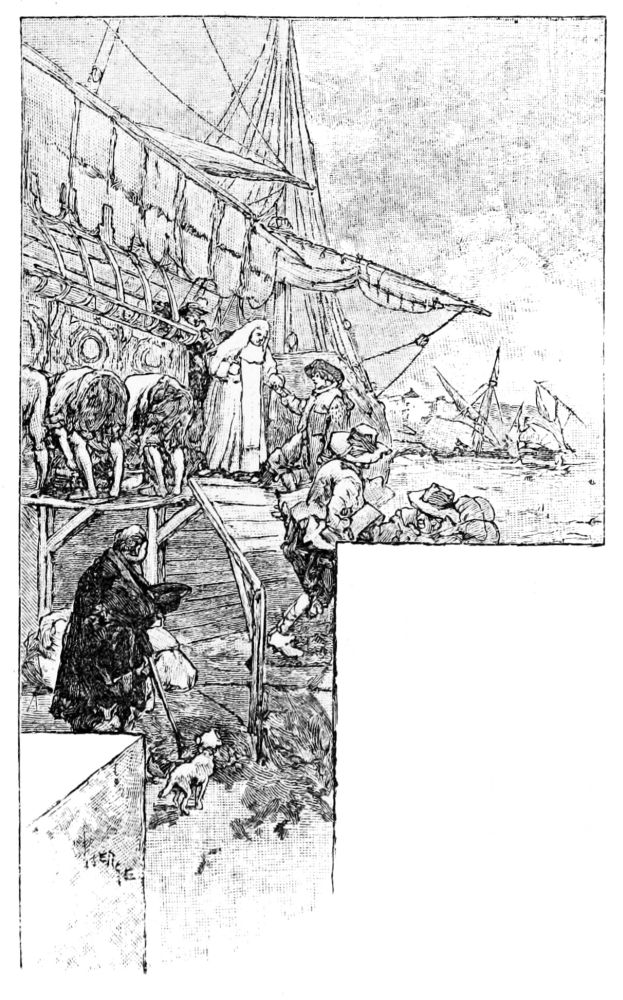 L’argent embarqué et tout mis à point pour retourner en Espagne, je fis à mon oncle un trait de conséquence en lui prenant cinq cents pesos. Sur les dix heures de nuit, cependant qu’il dormait, je sortis et dis aux gardes que le capitaine m’envoyait à terre pour affaire. Comme ils me connaissaient, ils me laissèrent bonnement passer. Je sautai à terre, et oncques plus ils ne me virent. Une heure après, on tira le canon de partance et, les ancres levées la flotte mit à la voile.{16}