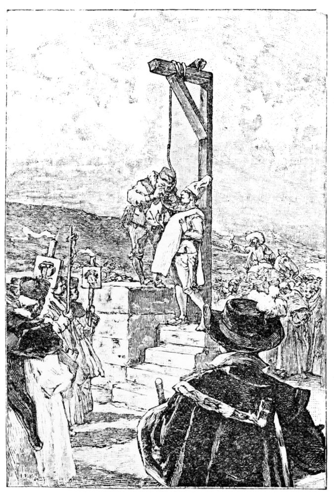 Je fus cinq ans Alferez. Je me trouvai à la bataille de Puren, où mourut mondit capitaine, et commandai la compagnie six mois environ, durant lesquels j’eus, non sans diverses blessures de flèches, plusieurs rencontres avec les ennemis. Dans l’une d’elles, j’eus affaire à un chef Indien, déjà chrétien, nommé don Francisco Quispiguancha, homme riche, qui nous avait fort inquiétés par diverses alarmes. Bataillant avec lui, je le désarçonnai, il se rendit à{44} moi et je le fis sur-le-champ brancher à un arbre. Le Gouverneur qui désirait l’avoir vivant en fut très fâché et dit que, pour ce fait, il ne m’avait point donné la compagnie. Il la donna au capitaine Casadevante, me réformant et me la promettant pour la première occasion.