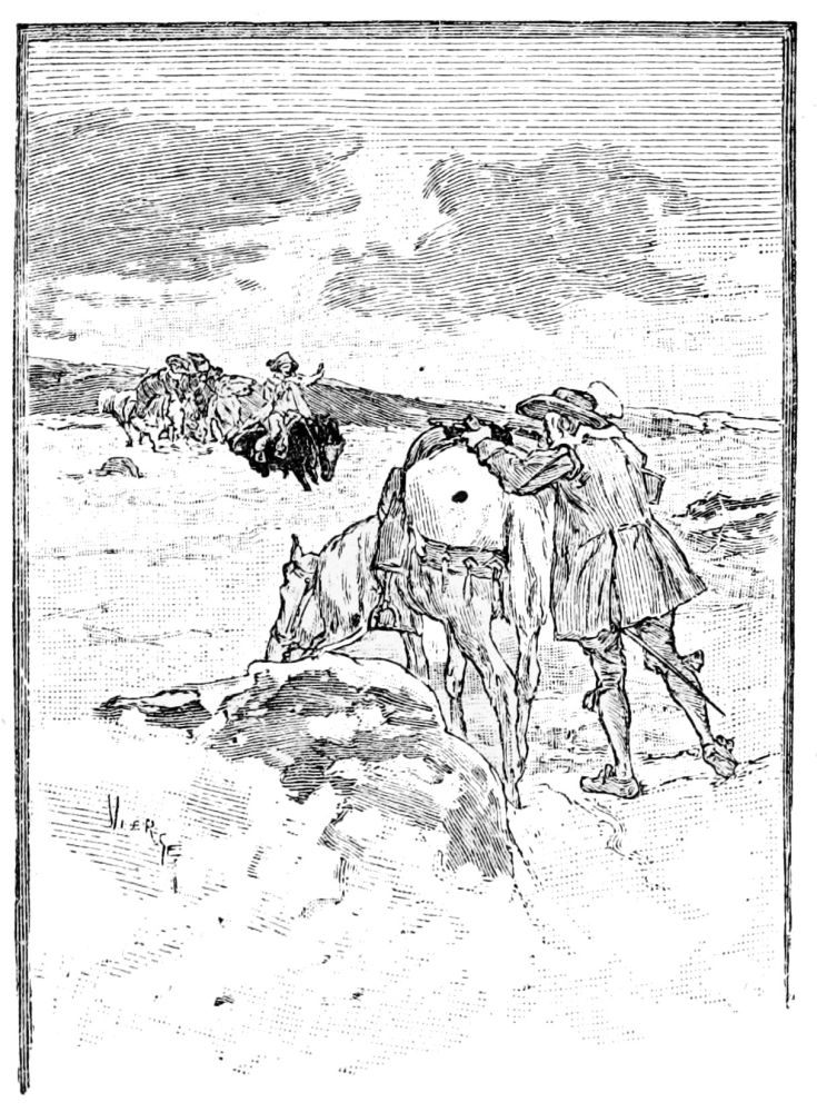 JE commençai à cheminer tout le long de la côte de la mer, endurant rudes fatigues et soif, car nulle part je ne trouvai d’eau. En route, je fis rencontre de deux autres soldats fugitifs, et tous trois nous suivîmes notre chemin, résolus à mourir avant que de nous laisser prendre. Nous avions nos chevaux, des armes blanches et à feu, et la haute providence de Dieu. Nous suivîmes{55} le haut de la Cordillère, sans trouver durant ces trente lieues de montée, non plus qu’en trois cents autres que nous fîmes, une bouchée de pain. L’eau était rare. Rien que des herbes, de petits animaux et quelques racines pour nous sustenter. De loin en loin, un Indien qui fuyait. Il nous fallut tuer un de nos chevaux pour en faire sécher la viande; il n’avait que les os et la peau. Ainsi cheminant, peu à peu, nous en fîmes autant des autres, restant à pied et sans nous pouvoir tenir. Nous entrâmes en une terre si froide que nous gelions. Nous rencontrâmes deux hommes adossés contre une roche. Tout réjouis, nous allâmes à eux, les saluant de loin et leur demandant ce qu’ils faisaient là. Ils ne répondirent pas. Nous approchâmes. Ils étaient morts, gelés, la bouche ouverte, comme s’ils riaient. Cela nous fit peur.