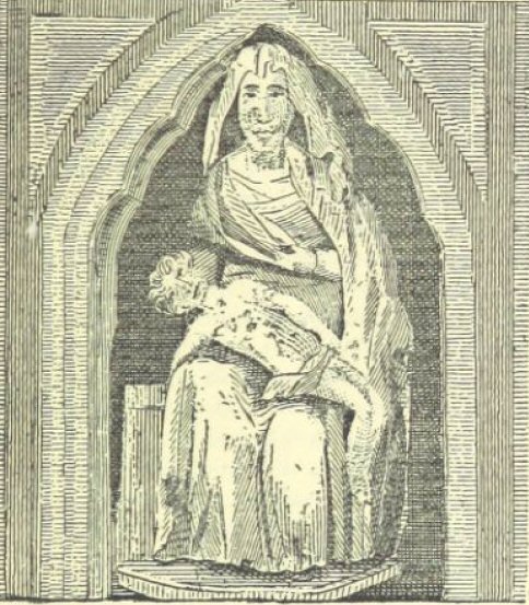 Outside the church, immediately over the East window, is a niche, surmounted by a canopy, in which stands the statue of Henry IV., about half life-size, crowned, with a dagger hanging on his left side, and his right hand grasping a sword.