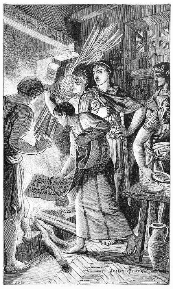 At the same time, the reader must remember that this book is not historical. It takes in but a period of a few months, extended in some concluding chapters. It consists rather of a series of pictures than of a narrative of events. Occurrences, therefore, of different epochs and different countries have been condensed into a small space. Chronology has been sacrificed to this purpose. The date of Dioclesian’s edict has been anticipated by two months; the martyrdom of St. Agnes by a{10} year; the period of St. Sebastian, though uncertain, has been brought down later. All that relates to Christian topography has been kept as accurate as possible. A martyrdom has been transferred from Imola to Fondi.