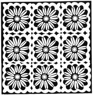TO MAKE DAISIES: Follow basic instructions for making daisies on page 3. Make 16 daisies winding color A twice around each spoke; then winding around same spoke twice with color B. Sew centers with C (type D daisy). Make 4 daisies winding every other spoke 3 times with A; then winding those spokes that were skipped 3 times with B. Sew centers with B (type E daisy).