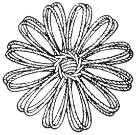 Directions in parentheses are repeated as often as specified. “(Ch 3, sc in next sp of petal) 3 times” means whatever is enclosed in parentheses is to be repeated for 3 times in all.