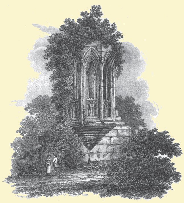 Within the demesne of Sundorn, the remains of Haughmond Abbey are situated. Of the foundation of this once venerable pile there is now no entire trace. Of the Abbey-church, nothing remains but the south door of the nave, a most beautiful and highly adorned round arch, resting on slender shafts, between which on each side have been inserted a p. 112Gothic tabernacle, inclosing statues of St. Peter and St. Paul. The chapter-house is entire; it is oblong, with the upper end forming two sides of a hexagon. The roof is of fine oak, and above has been another story. The entrance is by a richly decorated round arch, with a window on each side, divided into two round arched compartments, by slender short pillars. The spaces between the shafts of these arches have Gothic niches, and statues of the Virgin Mary, Gabriel, St. Catherine, St. John, &c. South of the chapter house, and opposite the site of the church, are remains of the Refectory, and beyond a large building, consisting of a spacious hall, eighty-one feet by thirty-six, lighted by Gothic windows on each side, and a large one, once filled with tracery, at the west end. On the north side is a curious antique fire-place. Communicating with this, at the eastern extremity, and at right angles, is another apartment of nearly the same size, once evidently in two rooms. At the south end is an elegant bay window. It is conceived this building formed the abbot’s lodgings and hall. The situation of the Abbey on a rising ground, backed by a noble distant forest, commands a very rich and extensive view of the great plain of Shrewsbury, with the town and castle, enriched by mountainous tracts.